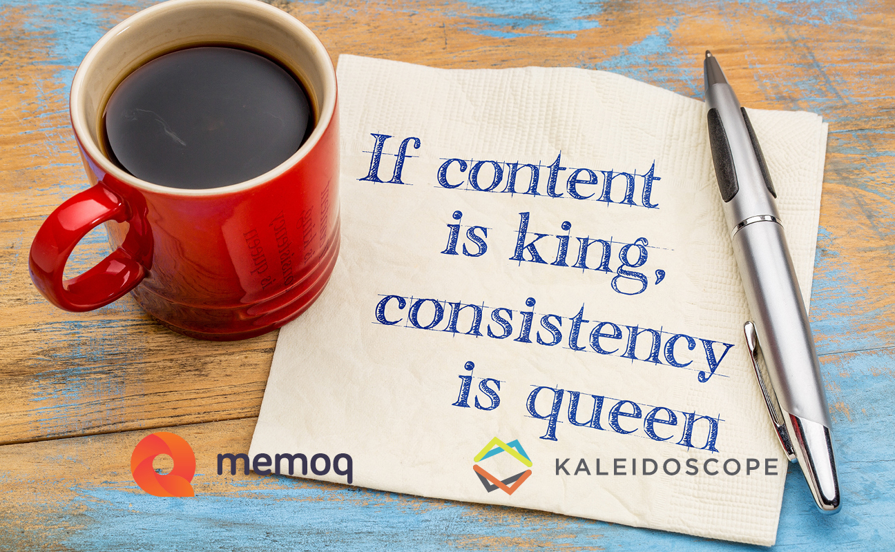 A great way to support your consistency efforts is by using the memoQ-Kalcium Quickterm integration which is based on API technology. This integration makes terminology available to both translators as well as the authors creating the source texts. And both can request words the addition of new terms or concepts as needed, which are then managed within the customizable Kalcium Quickterm workflow.